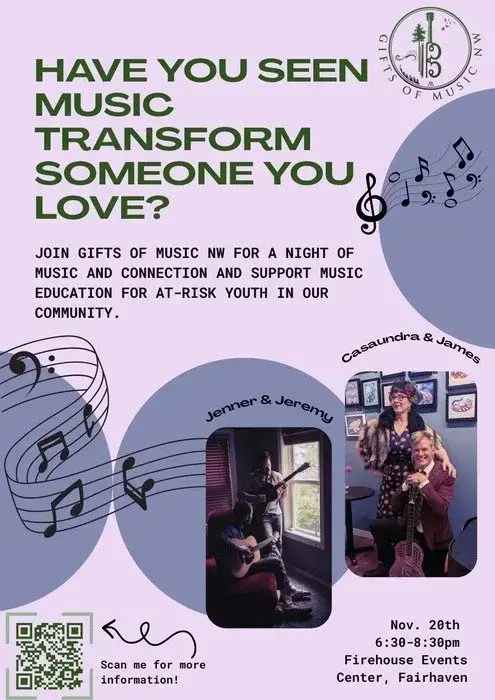 Gifts of Music NW brings music education and performance opportunities to at-risk youth and seniors in Whatcom County. We've created music classes for teens at the Whatcom Juvenile Detention Center and song circles at assisted living facilities around town. Our aim is to enhance joy and confidence through music.