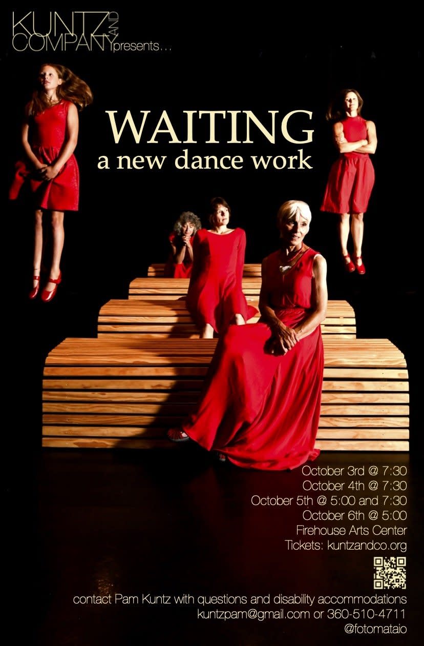 Kuntz and Company artists Alona Christman, Vanessa Daines, Pam Kuntz and Kate Stevenson along with community members Hazel, Emily, Naquoia, Shalini, Kathy, Ann, Kim, Angela, Evelyn, and Skyla bring "WAITING" to the Firehouse Arts and Events Center, October 3-5 @ 7:30 and October 5-6 @ 5:00.