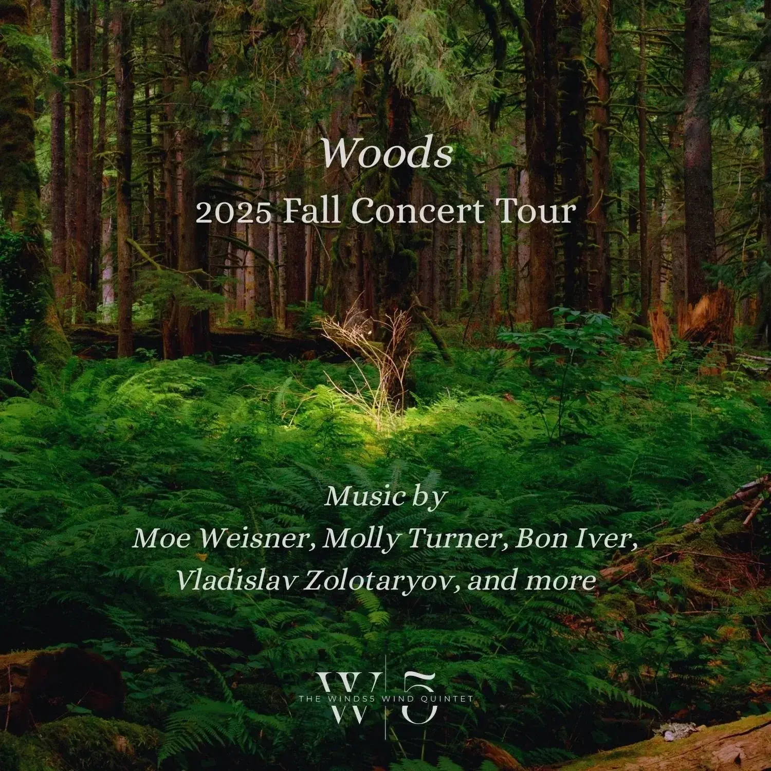 Winds5 is excited to present their next concert series: Woods. This program features a mix of music inspired by forests and nature, from Bon Iver to forest-themed video game music. We are also premiering two brand-new pieces written for wind quintet by composers based in Seattle and Tacoma. Join us for a unique afternoon of music that will take you on a walk through the Woods.